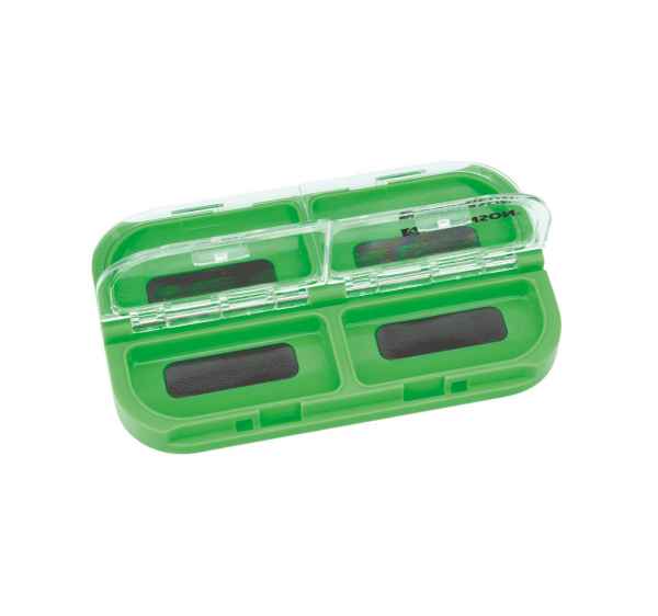 Magnetická krabička určená na uloženie drobného kovového príslušenstva, ako sú obratlíky, karbínky, háčiky atď.